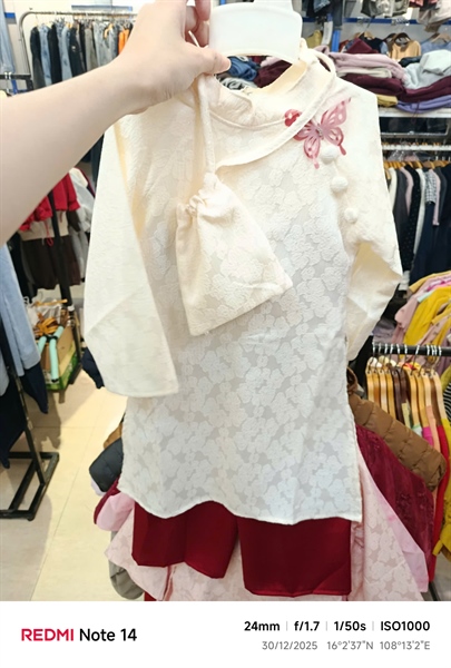 Áo dài nữ phối họa tiết bướm sang chảnh kem, hồng (6-10)