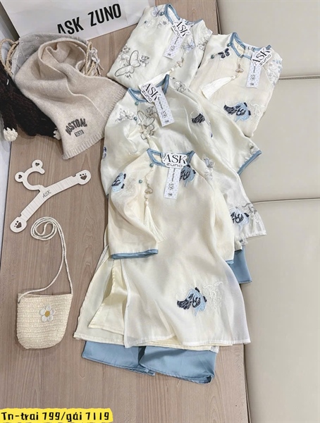 Áo Dài Tơ Thêu xanh Ngọc 9-23kg (80-130)