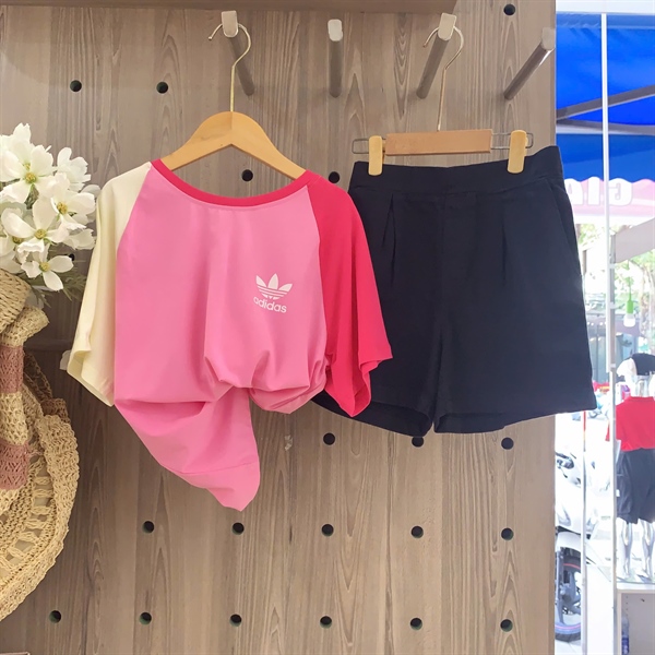 2415 áo thun adidas tay phối phom rộng 10-15 hồng