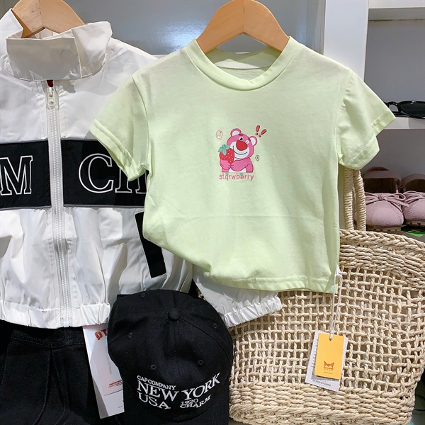 H2697 Áo thun Gấu Dâu 90-130 hồng,xanh