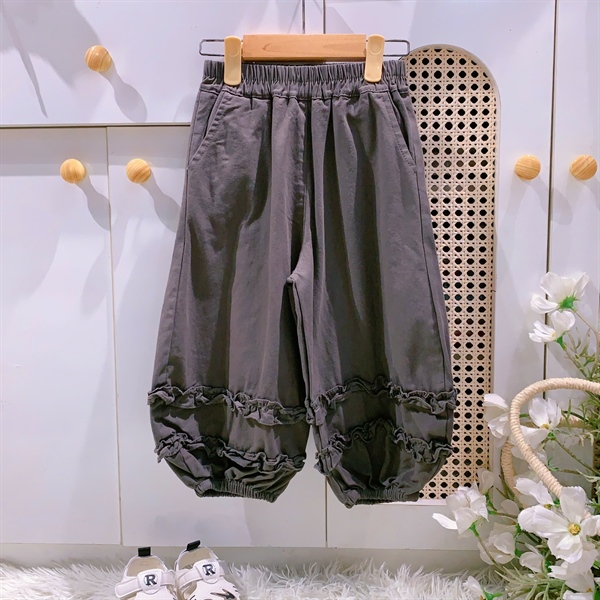 910 Quần bo chun bèo màu ghi, nâu đất (90-130)