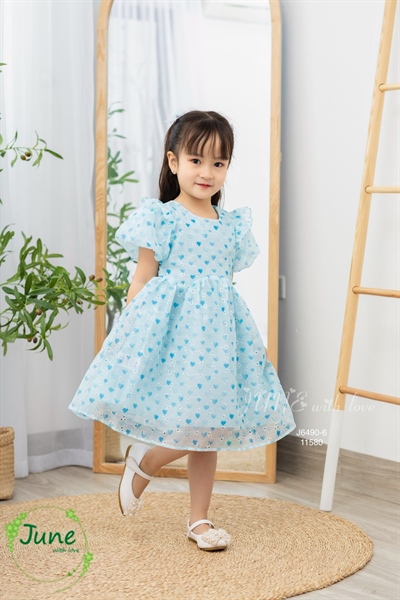 Đầm hoạ tiết trái tim dễ thương be, xanh 1-5